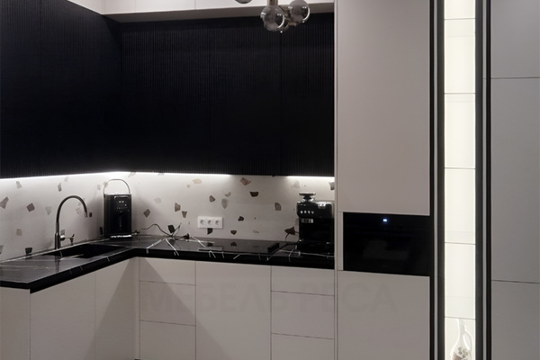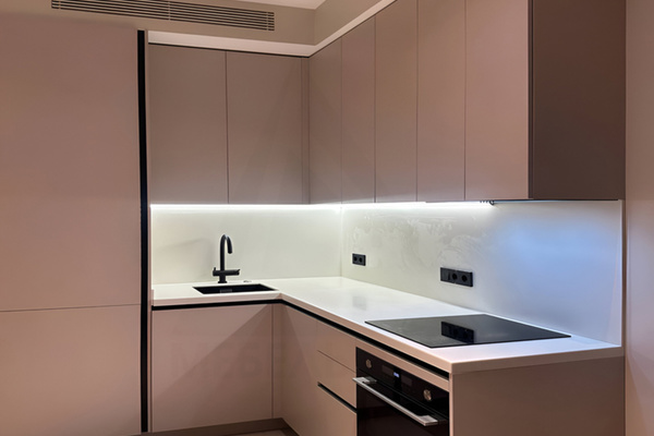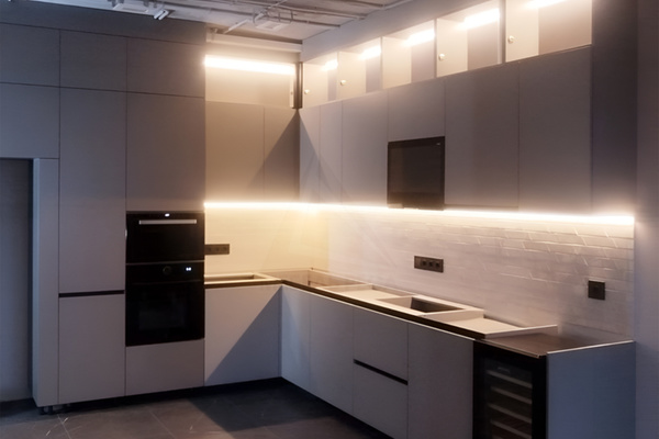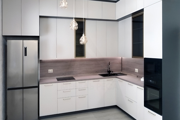 Мы можем предложить Вам фасады из практически любых материалов: массив, шпон, эмаль, глянцевые и матовые панели, пластик. Мы сотрудничаем также с поставщиками Cleaf, SM'art, AGT, Fenix, Alvic. Камень для фартуков и столешниц мы используем Staron, Grandex, Neomarm.
