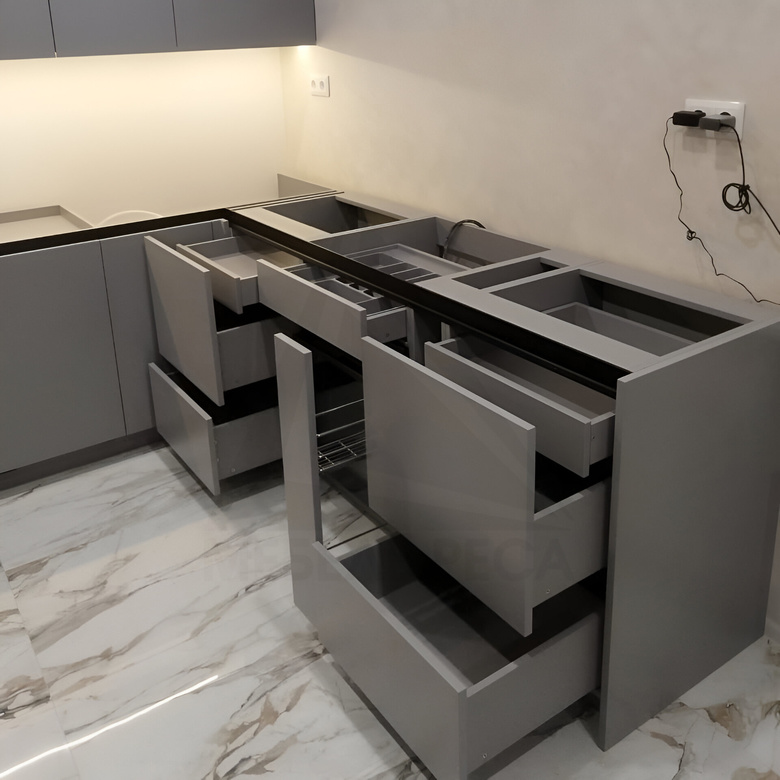 Фасады выполнены из МДФ в матовой эмали.