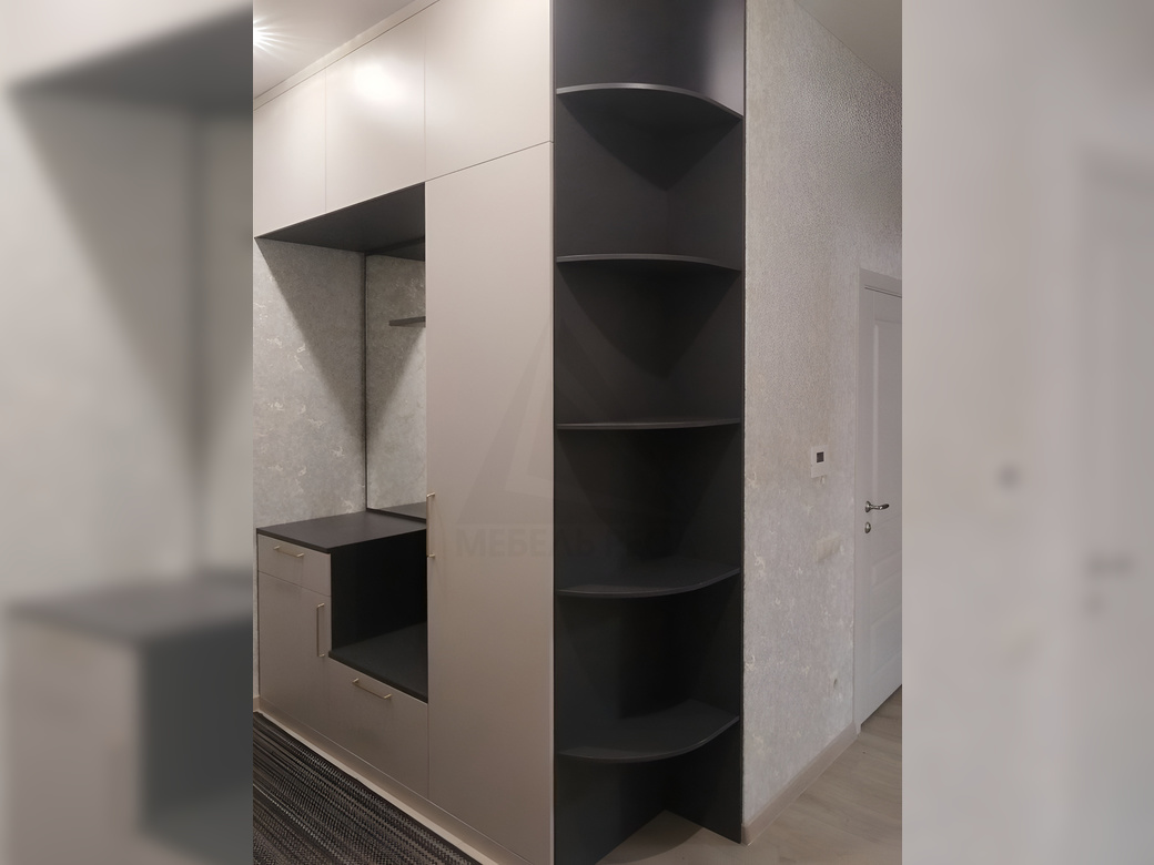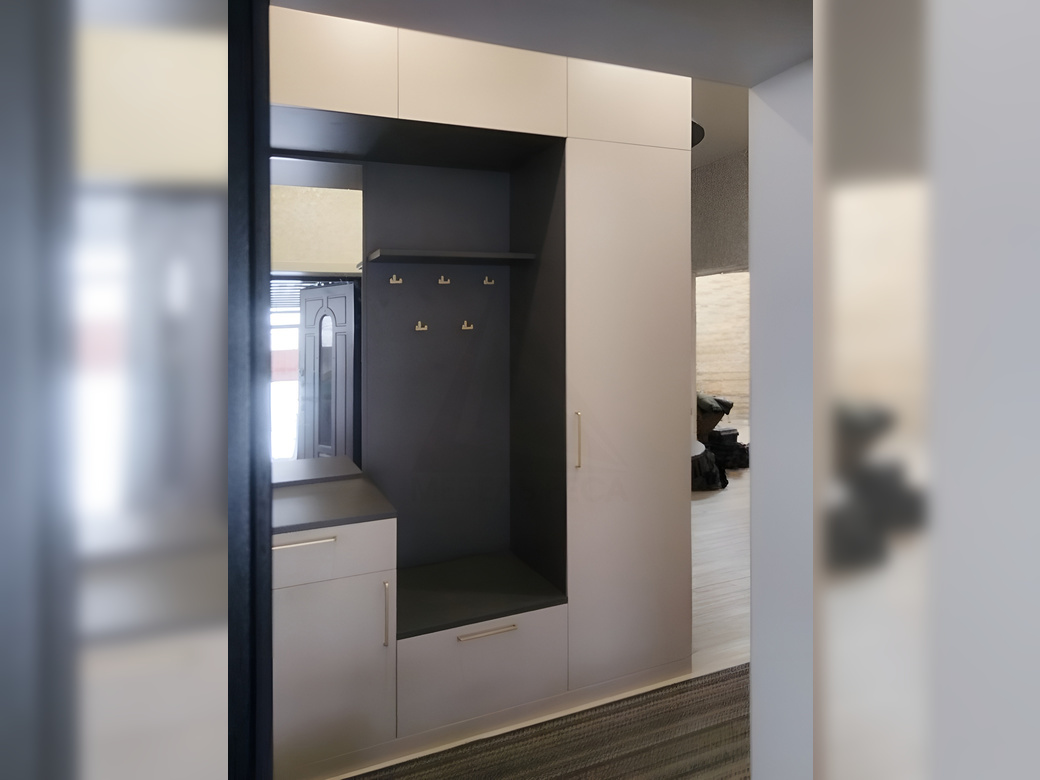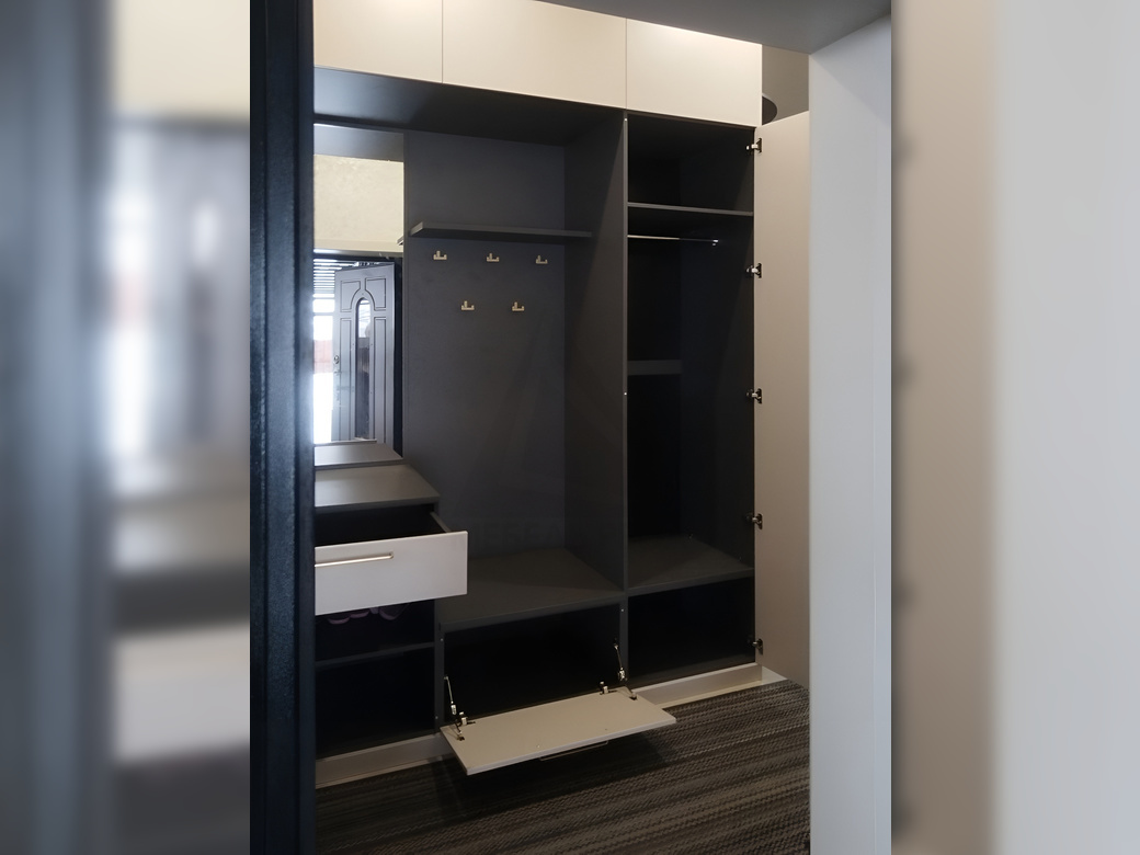 Встроенная прихожая с боковой секцией, где вы сможете хранить вашу одежду, обувь и аксессуары.